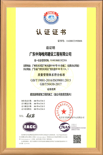 廣東中海唯邦建設工程有限公司廣州第一分公司 始創于2008年專注于工裝設計裝修,致力于高品質室內設計及施工服務,項目涵蓋辦公室寫字樓總部辦公樓整棟廠房、醫療美容展廳等領域。中海唯邦擁有建筑裝修裝飾工程專業承包二級、消防設施工程專業承包二級、鋼結構工程專業承包二級、建筑機電安裝工程專業承包三級、建筑裝修工程設計專項丙級,擁有建造師、設計師團隊40余人,自主施工團隊400余人,至今已為 5000+ 客戶提供設計裝修服務,深得客戶信任,其中包括:中國太平洋人壽保險、華泰證券、粵海大廈、百事得森 、泰康人壽、順豐速運、中國郵政、廣州酒家等。